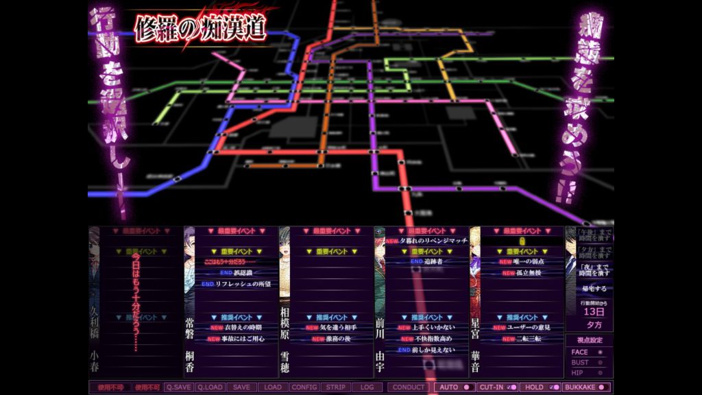 痴漢もののエロゲーで、時間制限のあるなか情報を集めて痴漢をする